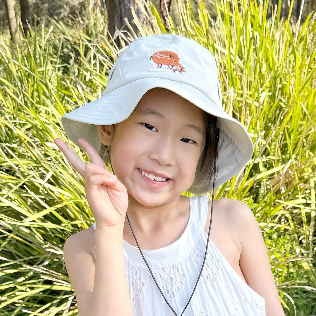 可收納雙面戴兒童漁夫帽-熊豹深藍