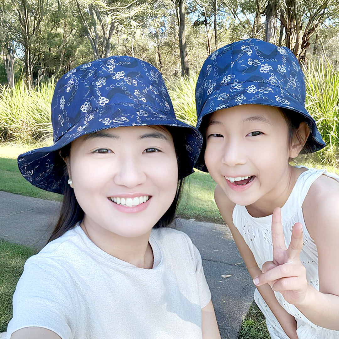 大人+小孩可收納雙面戴漁夫帽-熊豹深藍